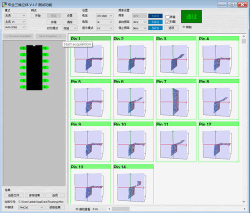 二维集成电路用V-I动态阻抗端口测试通道:256路;二维电路板用V-I动态阻抗端口测试通道:128路;三维扫频V-I-F动态阻抗端口测试通道:128路集成电路的来料质量控制检测与筛选,一致性检测;快速筛选假冒,仿制集成电路及元器件.